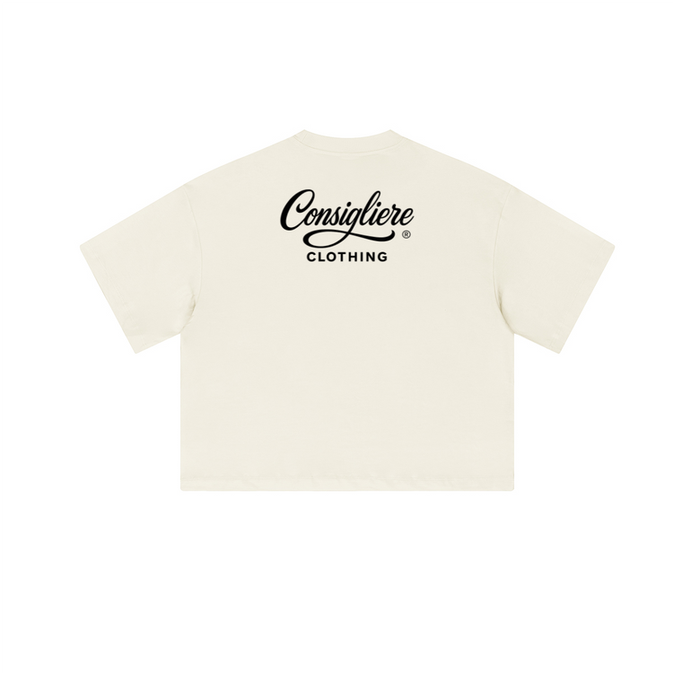 The oversized body and cropped length create a bold, structured look that pairs seamlessly with cargos, denim, or layered streetwear fits. Front and center sits the Consigliere® Sigil—a geometric emblem representing discipline, ascension, and self-direction. More than a logo, the Sigil functions as a declaration of identity for those walking their own path.